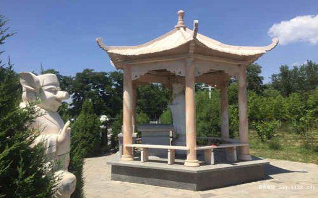 大宅门式的汉白玉"屋"门,进一步使福位人性化,石门上可以刻字,挂照片、楹联,案台上可供奉灵牌、石狮、祭品、香炉等,力求通过建筑美学与民族文化之融合,完整诠释华族孝道之美德。